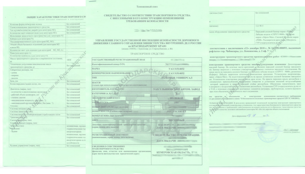 Внесение отметки о переоборудовании в ПТС